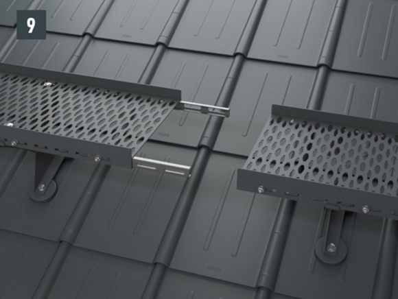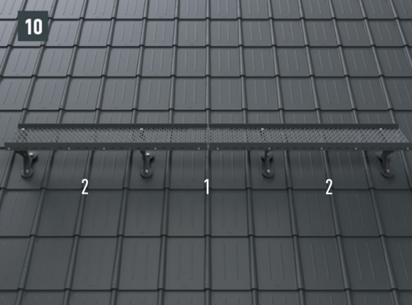 Minden PREFA tetőfedő rendszer esetében szükség lehet egy alátétlemez felszerelésére (pl. ha a szerelési területen korc vagy hullámcsúcs található). A járórács-tartó elemet ne tegye és ne rögzítse a PREFA tetőfedő elem korcára vagy hullámcsúcsára.