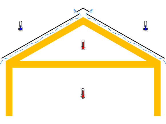 Az átszellőztetett (fűtetlen) tetőtérnél a hőszigetelés a legfelső födémszinten helyezkedik el. A felette lévő tetőtér hőszigetelés nélkül marad, és teljesen átszellőzik. Az eresz- és oromfal-nyílásokon keresztül friss levegő tud beáramlani, és a tetőgerincen keresztül távozni.