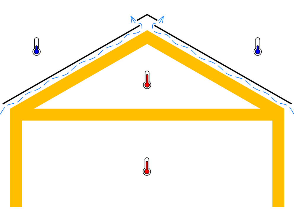 Az átszellőztetett tetőszerkezetek a hőszigetelés és a tetőfedés között légréssel rendelkeznek. A szellőzőréteg gondoskodik a hő és a nedvesség elvezetéséről, amelyek diffúzió útján a belső térből a tetőszerkezetbe jutnak. Ez kedvezően hat a beltéri klímára, és csökkenti a páralecsapódás és az épületben keletkező károk kockázatát.