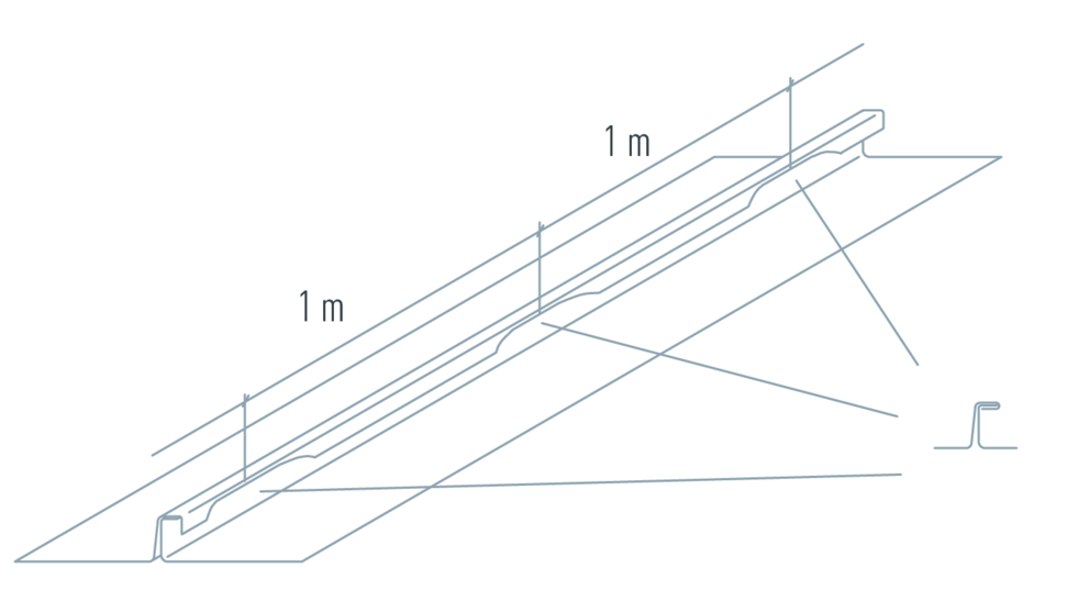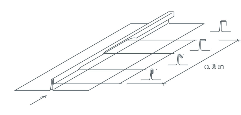 profilszalagon ejtett bemetszés következményeként a szalagok felboltozódnak (lásd a gyártói kézikönyvet). A falctávolságot igazítsa hozzá a beépítési hőmérséklethez: Korczáró gép használata esetén a túl nagy korctávolság a falc felhajlított részeinek deformációjához és ezáltal a szalagok felhajlásához vezethet. A kis távolság akadályozza a keresztirányú tágulást.