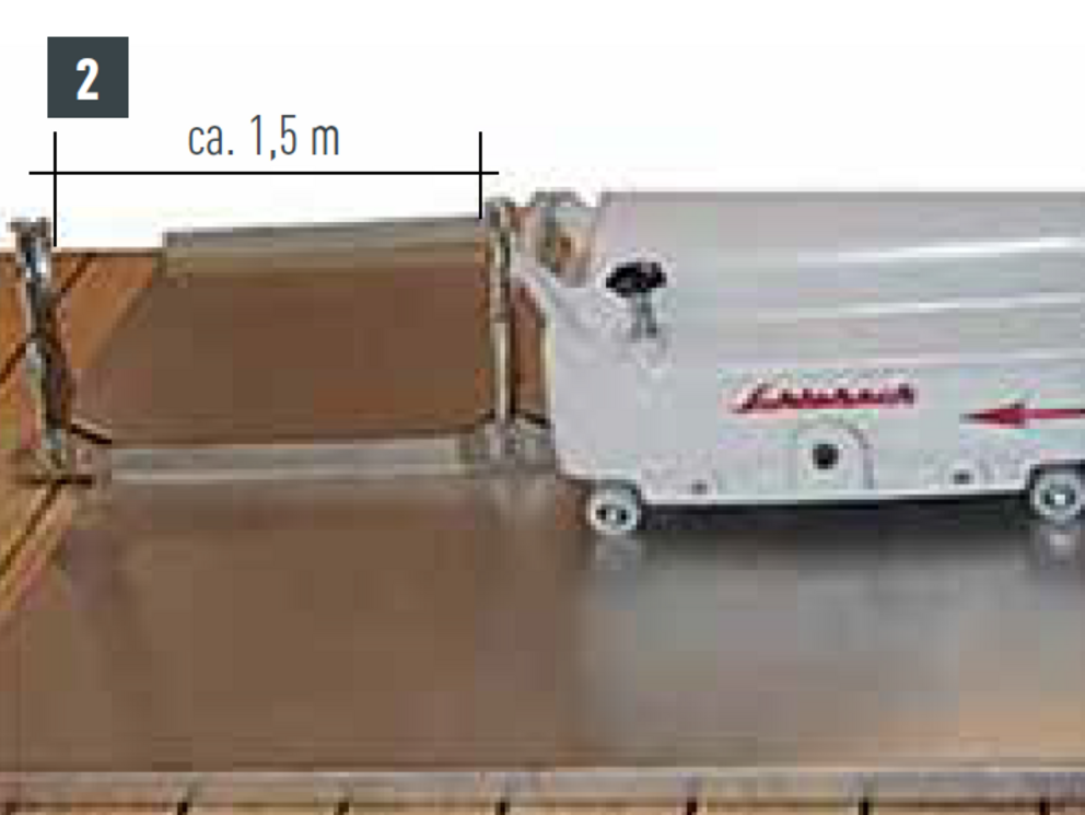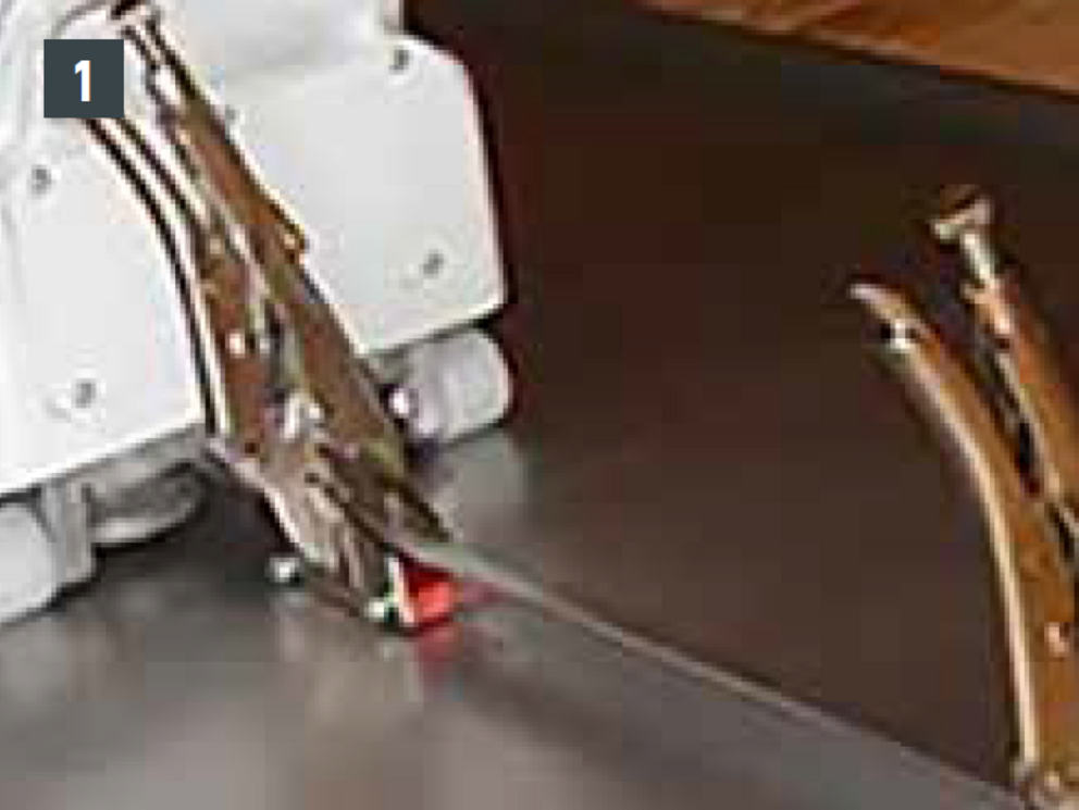 A lefektetett fedősávot a sarnik teljes hosszában – kb. 1,5–2,0 m-es távolságban (lásd az 1. képet) – rögzítse rögzítőfogóval (lásd a 2. képet). Ezáltal a két szalag peremezése 90°-ra összenyomódik.