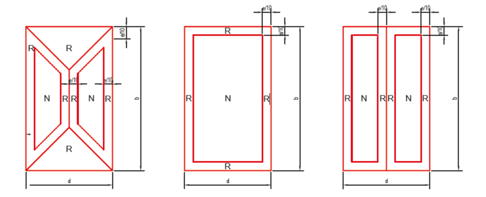 e = b vagy 2*h (a kisebb értéket kell figyelembe venni) – a távolság az alapterületre vonatkozik