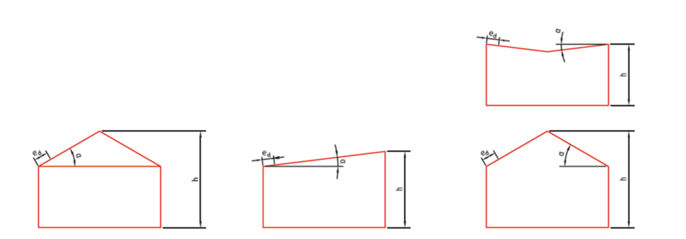ed = távolság a tetőfelületen; ed = (e/10) / (cos)