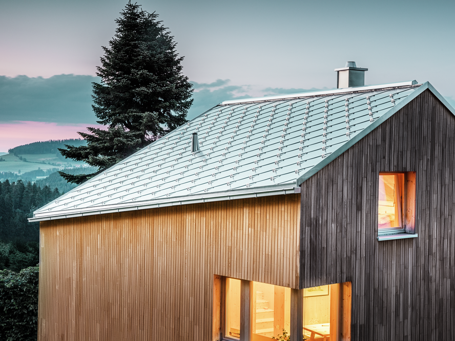 A három fényesen csillogó tető már messziről, a környező hegyekből is szemet szúr. Elkészítésük azonban nem volt egyszerű. A fiatal bádogos mester Leonard Proba azonban ezt már tudta a legelején. Elmondása szerint már a kiírásban is felfedezte, hogy tervezést, precizitást és pontos kivitelezést igénylő feladatról van szó. A fiatal mester, aki csupán a projekt kezdete előtt néhány hónappal vette át a cég irányítását édesapjától, végül sikeresen megoldotta a süllyesztett csatornák és aszimmetrikus élek hordozta kihívásokat. A ház nyeregtetőjére leginkább a ferdén futó élek jellemzőek, mintsem a derékszögek vagy a párhuzamos vonalak, egyedül a gerinc egyenes, így nehéz volt a szakembernek megtalálni a PREFA tetőfedő rombuszainak kiinduló pontjait, de kreativitása átsegítette a nehézségeken: az alszerkezetre rajzolva találta meg az egyes darabok helyét. Munkáját hobbijához, a hegymászáshoz hasonlította és elmondta: „Folyamatos kihívásokra van szükség, hogy ne essünk ki a gyakorlatból.”