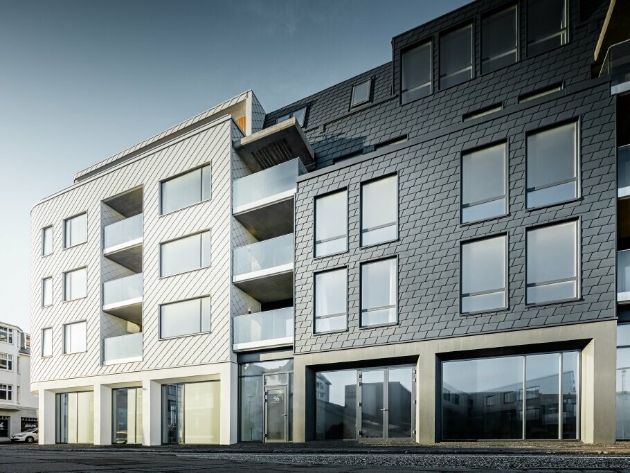 A hazai táj szépsége inspirálta Tryggvi Tryggvason izlandi építészt, aki koncepciójával a gleccserek, lávák és sziklák világát idézte meg a reykjaviki ingatlan tervezésekor. Az épület homlokzatán és tetején megjelenő fehér, homok-, és antracitszürke Prefa alumínium tetőfedőanyagok segítenek a kívánt hatás elérésében, a vizuális megjelenítésben.